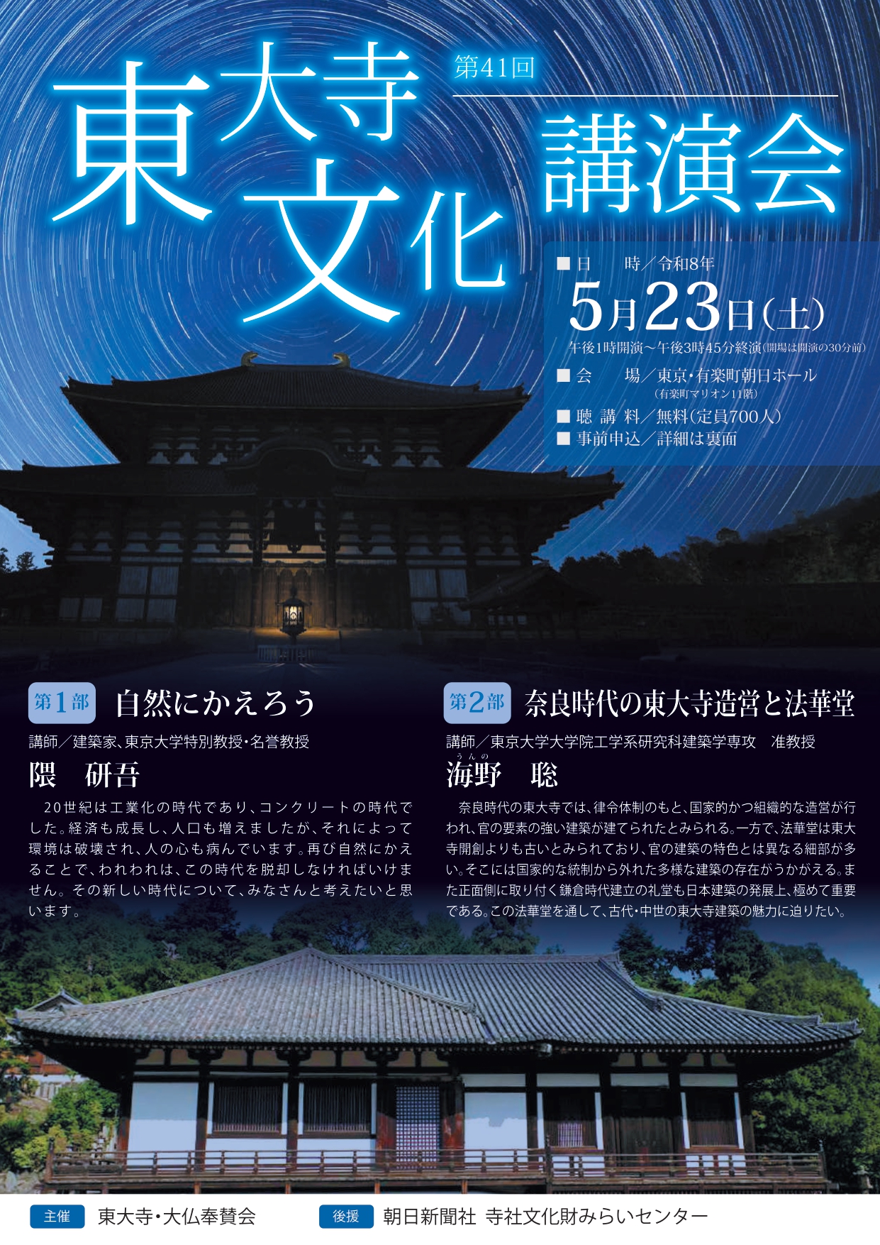 EventKengo Kuma Lecture Announcement – The 41st Todai-ji Cultural Lecture Series 2026.04.30