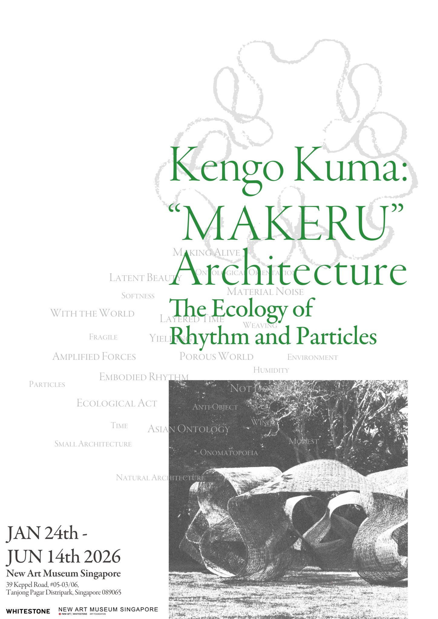 We are pleased to announce that the exhibition “Kengo Kuma: “MAKERU” Architecture — The Ecology of Rhythm and Particles —” will be presented at the New Art Museum Singapore.