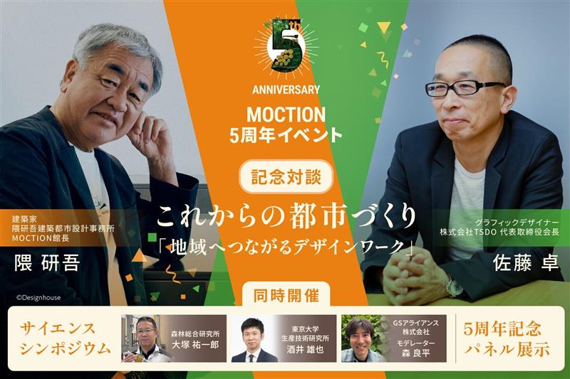 MOCTION 5th Anniversary Event Commemorative Dialogue: Kengo Kuma × Taku SatohFuture City Design: Connecting to Local Communities 2026.02.02