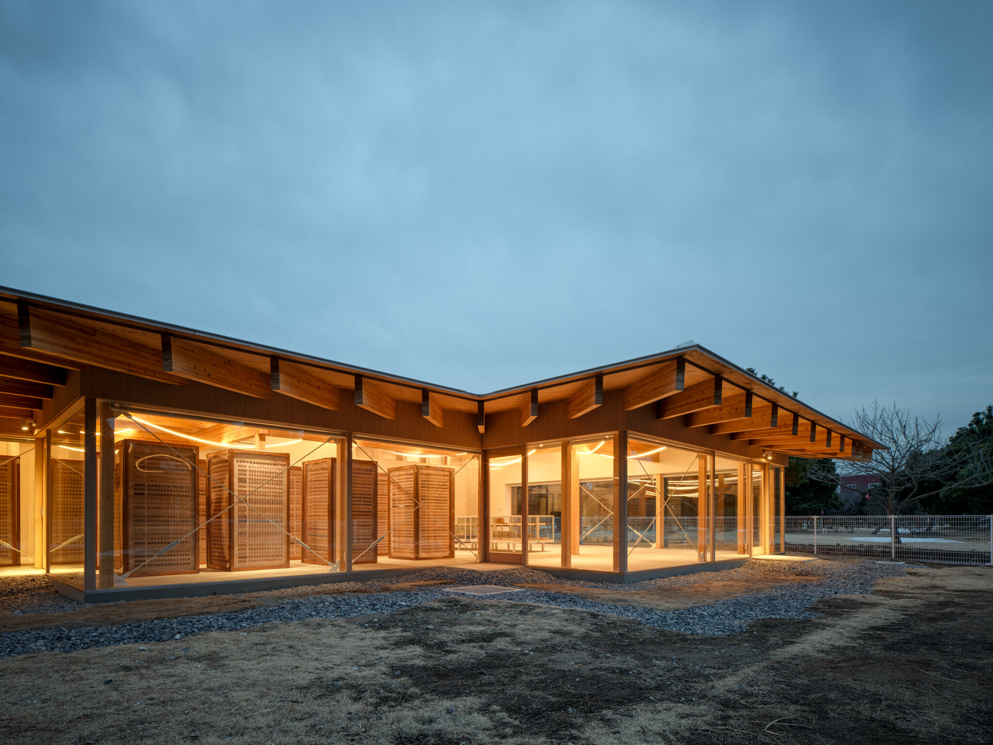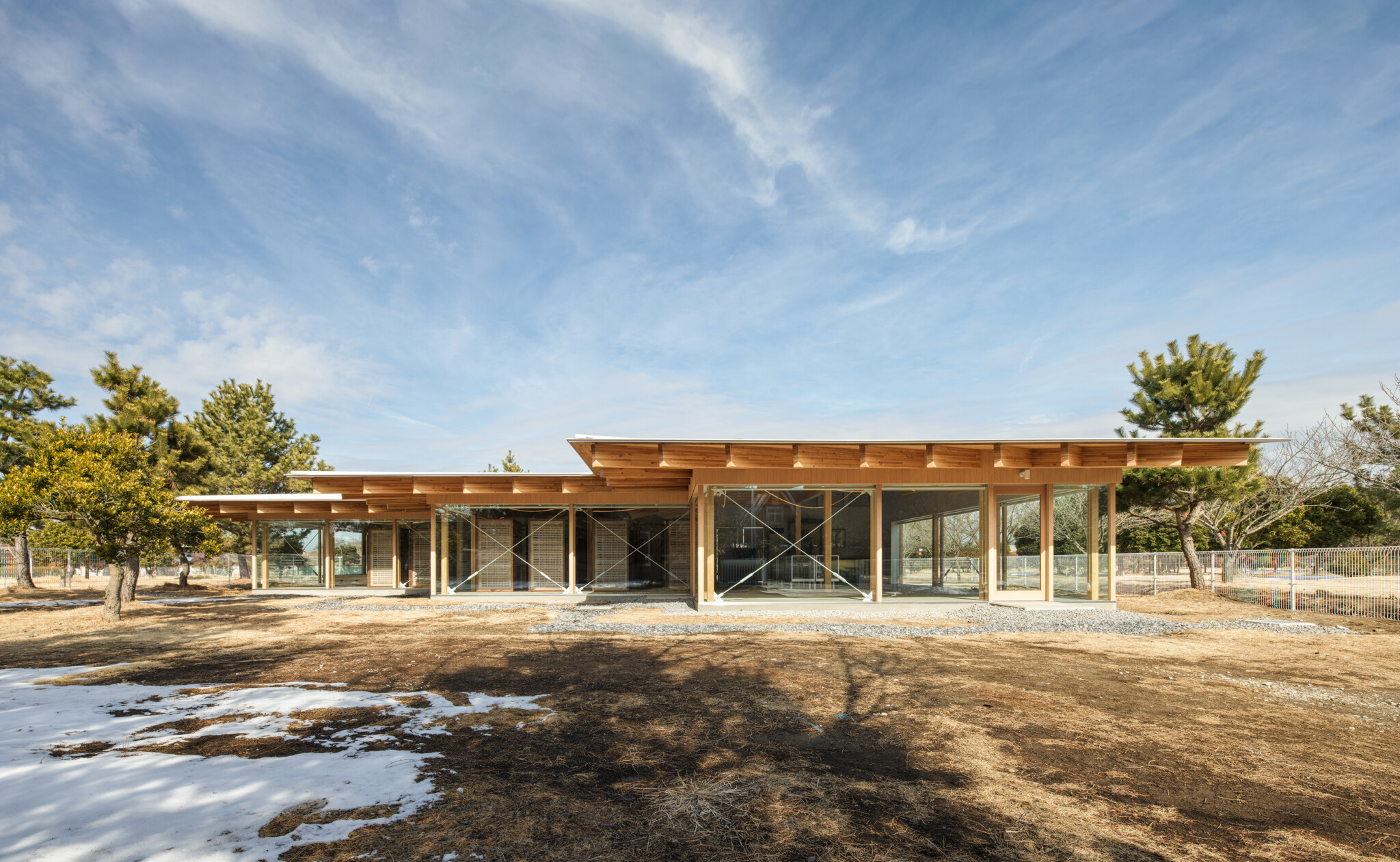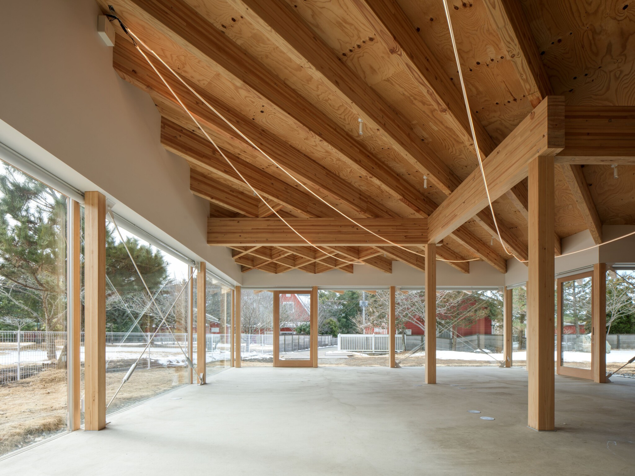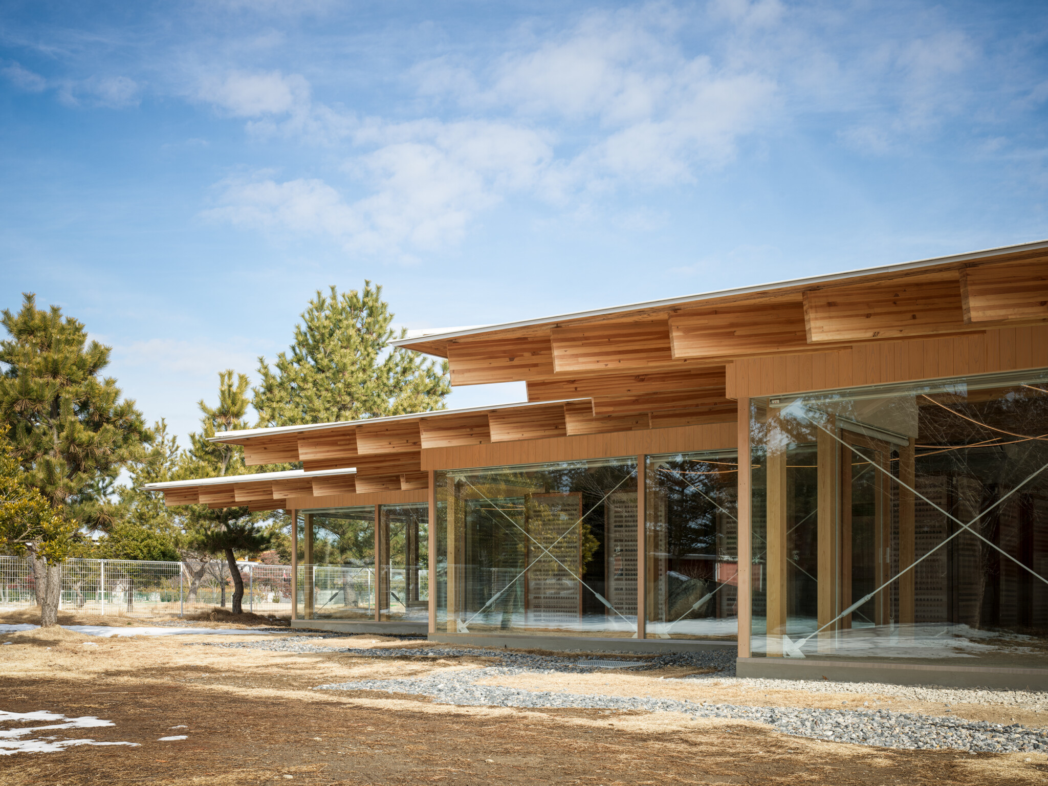 Opposite the Hirosawa Museum of Art (2020), a single-story wooden structure was added to create a communication village that serves as a hub for community exchange.