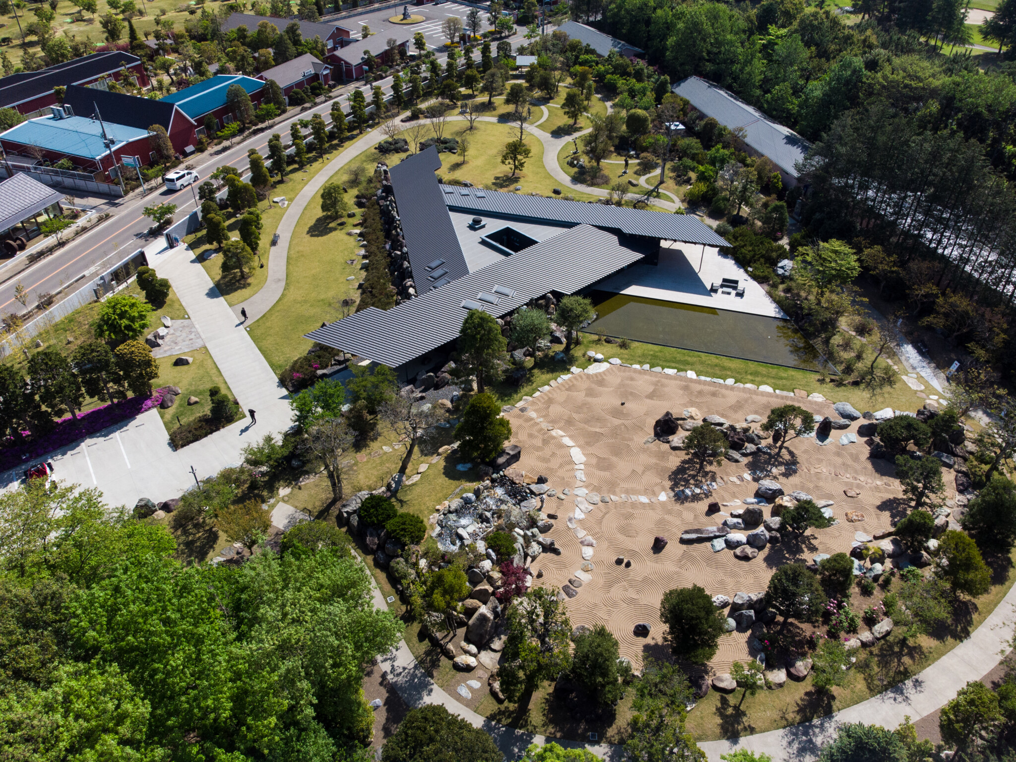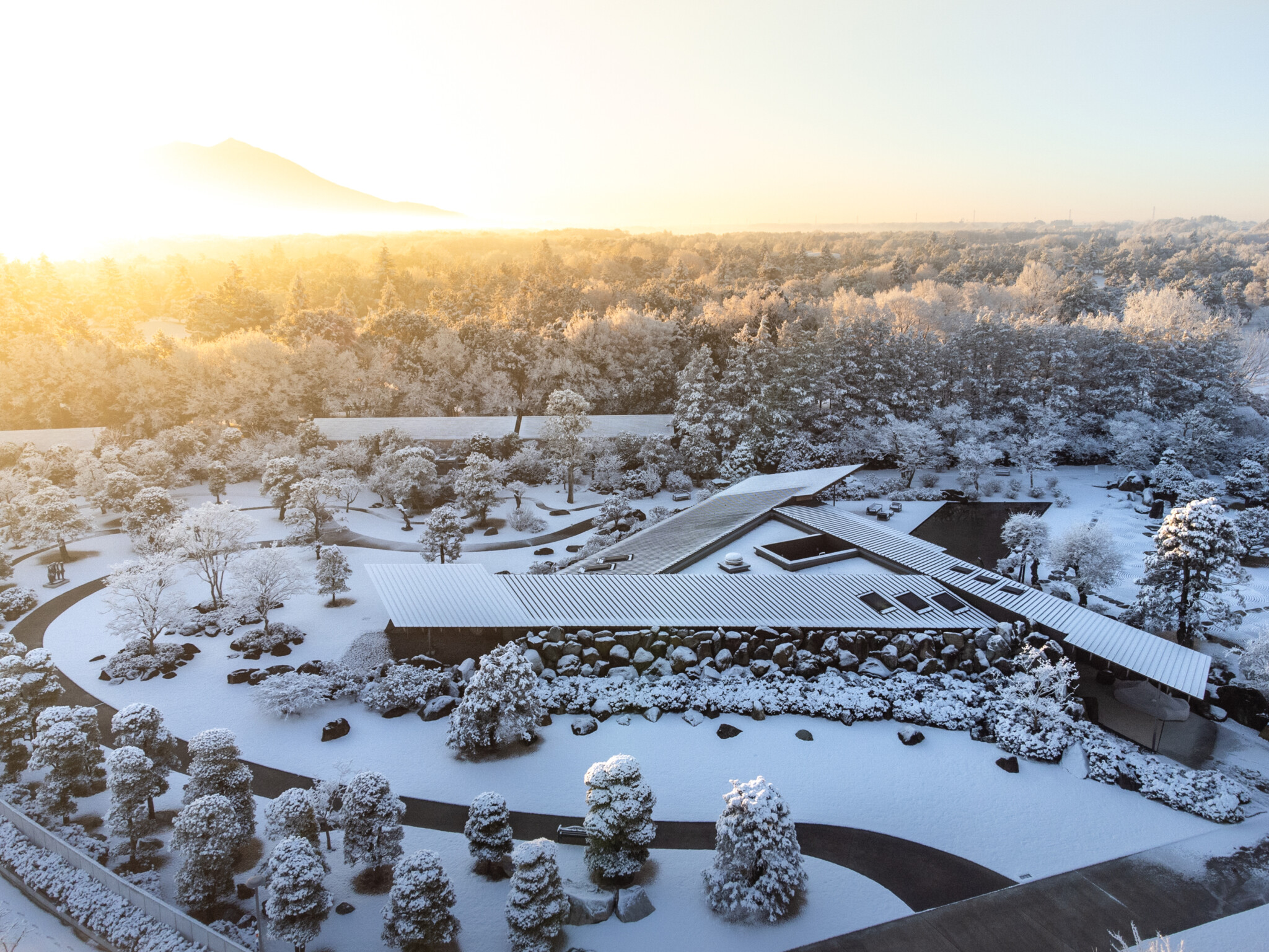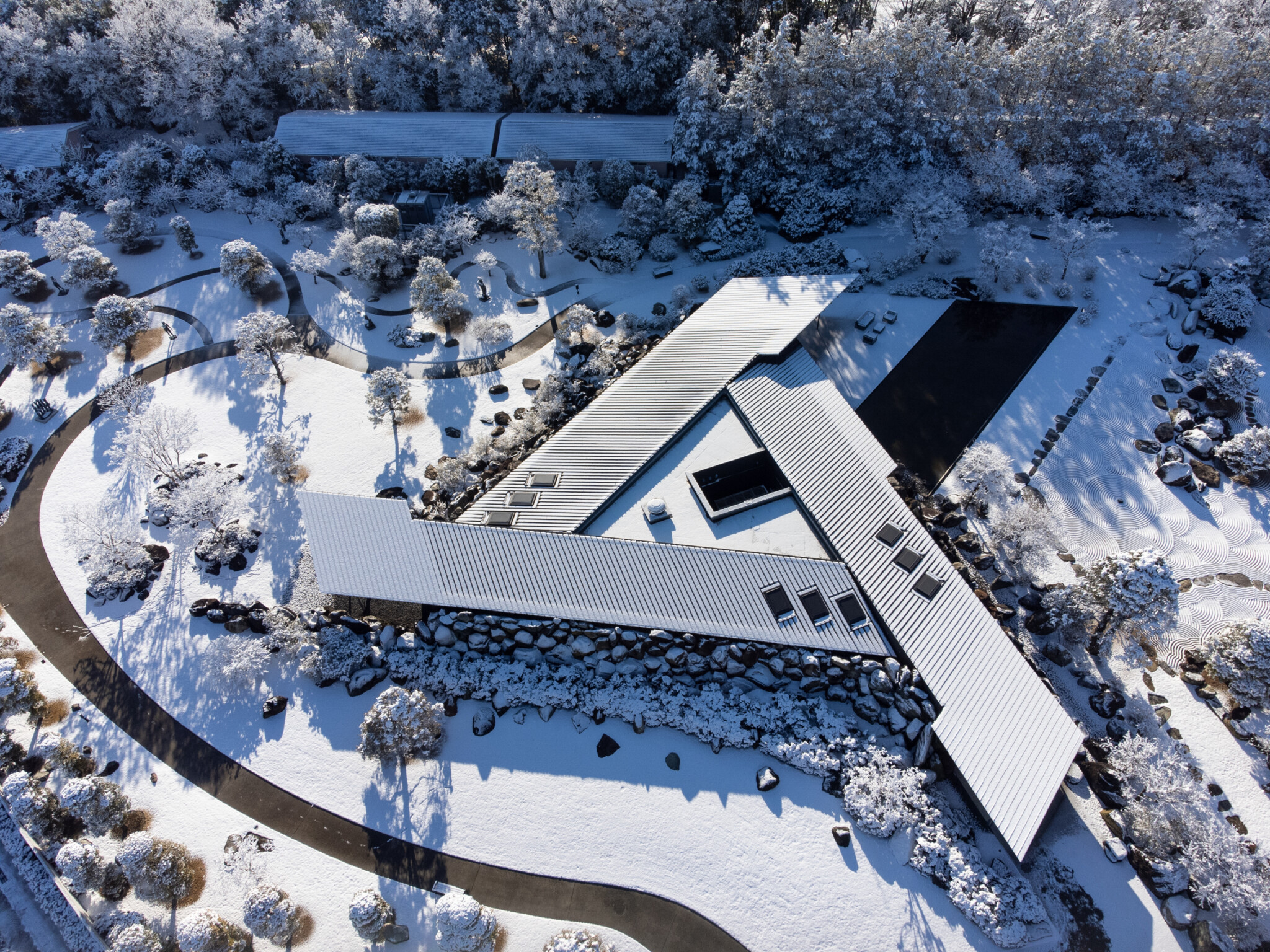 Nestled in the greenery of Chikusei City, Ibaraki Prefecture, a museum was designed to house the collection of Kiyoshi Hirosawa, an art collector. The building and landscape are enveloped by the vast number of megaliths Hirosawa accumulated over many years, allowing the architecture and garden to merge seamlessly, effectively “erasing” the building within the landscape.