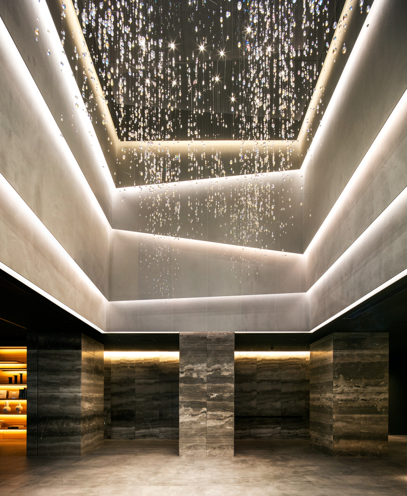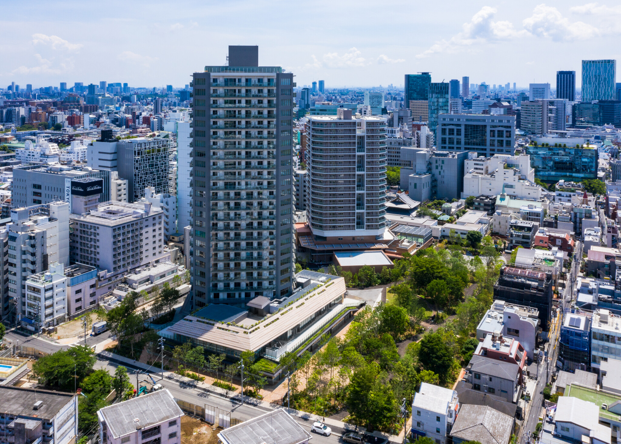 In a residential area between Aoyama-dori and Omotesando, a green tower residence was designed with the themes of tranquility and Tokyo’s gentle topography.