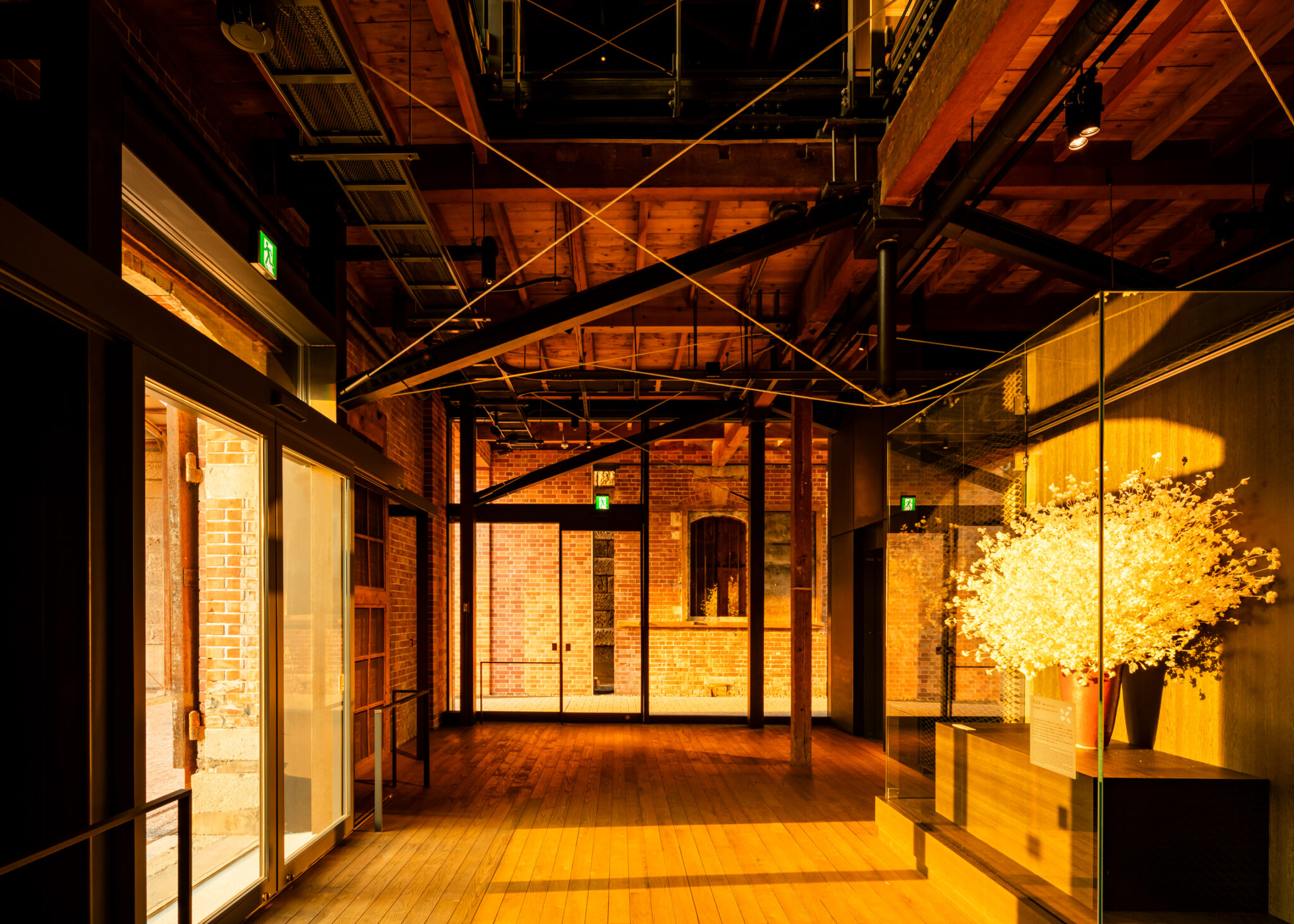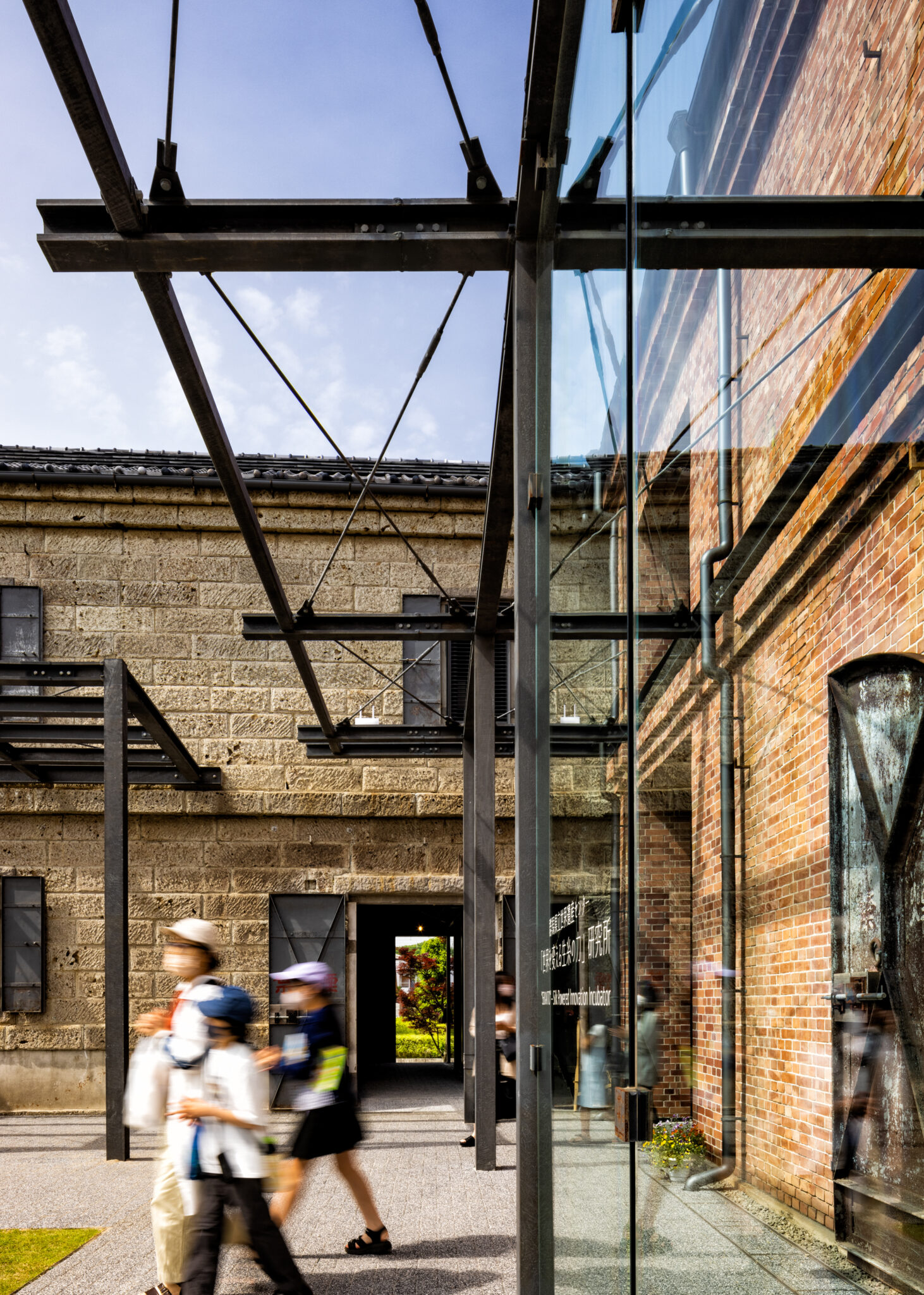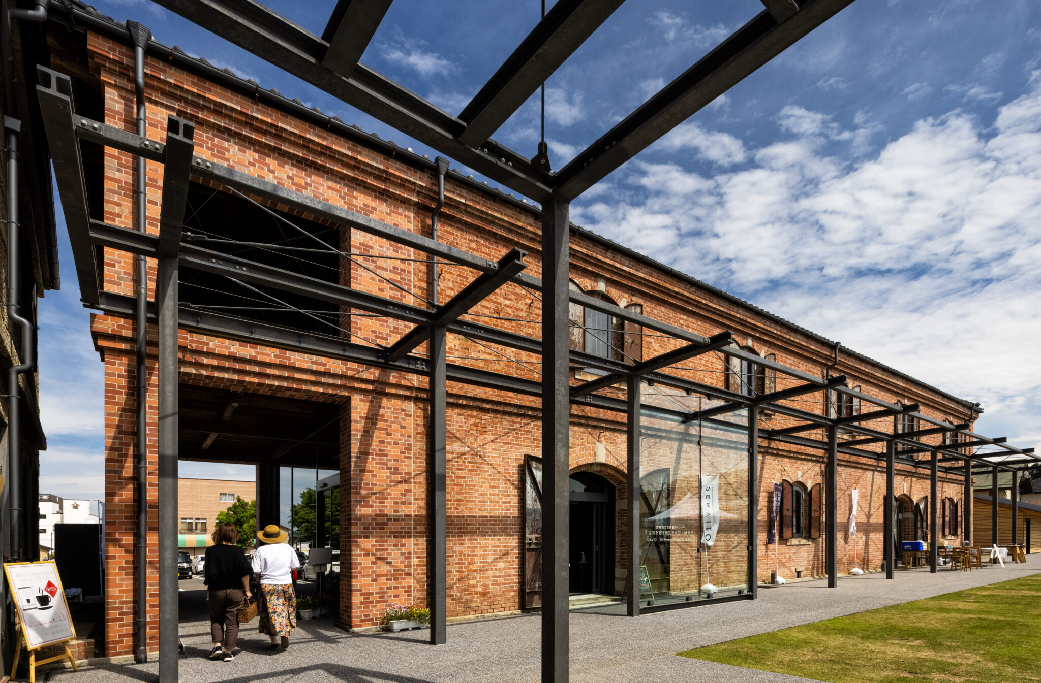 Warehouse No.1 (completed in 1901), a brick structure laid in the English bond, was reinforced through a combination of exposed steel columns and carbon fiber–reinforced plastic (CFRP). Making full use of the texture of the brickwork, it was reborn as an exhibition space that conveys the history of Tomioka’s silk industry.