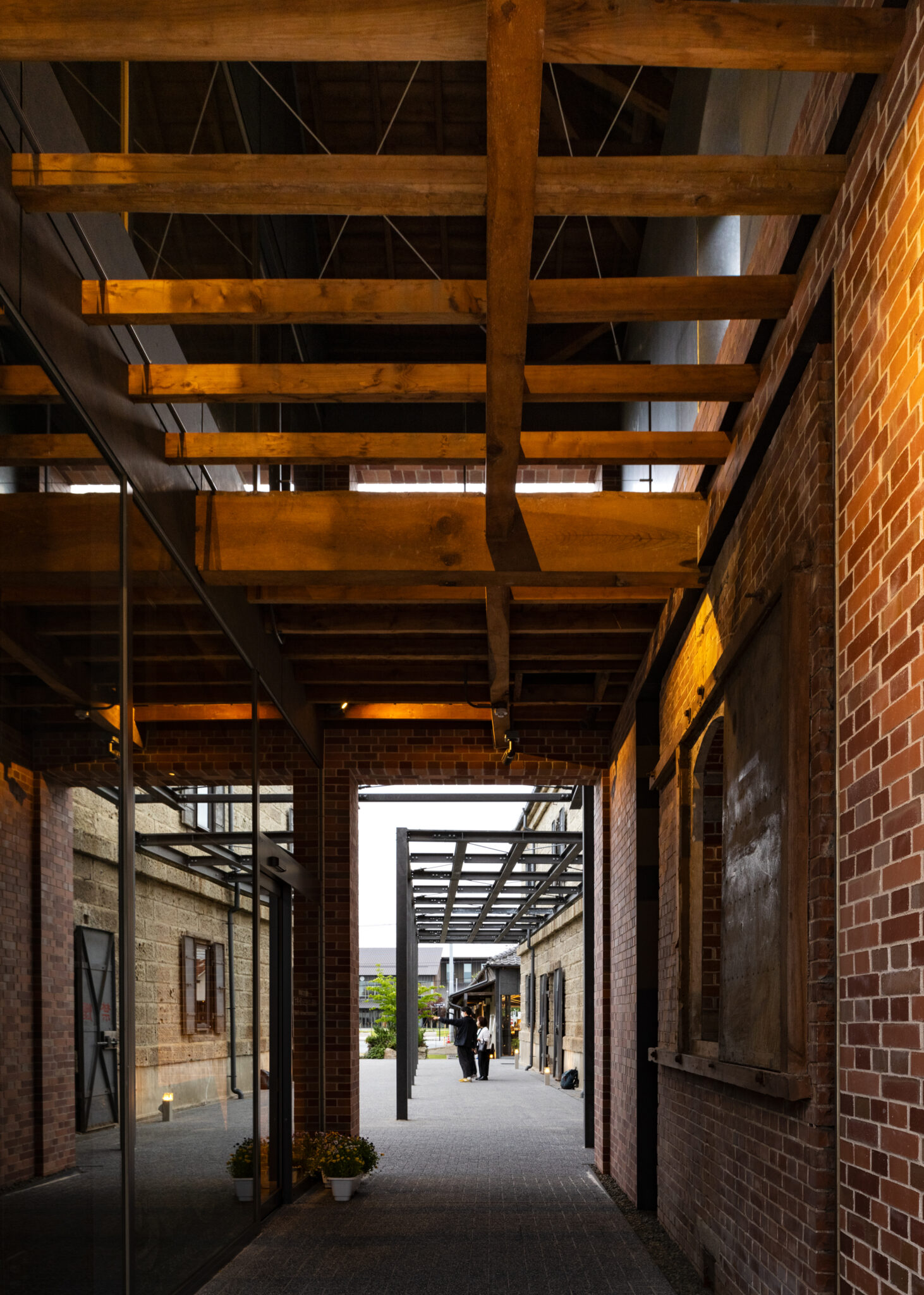 The roof was re-covered with twice-fired tiles produced in a daruma kiln, a method of which only a few examples remain nationwide, originating in Kanra Town. The openings were also enlarged, transforming the former warehouse into an open space that seamlessly integrates with the adjacent plaza.