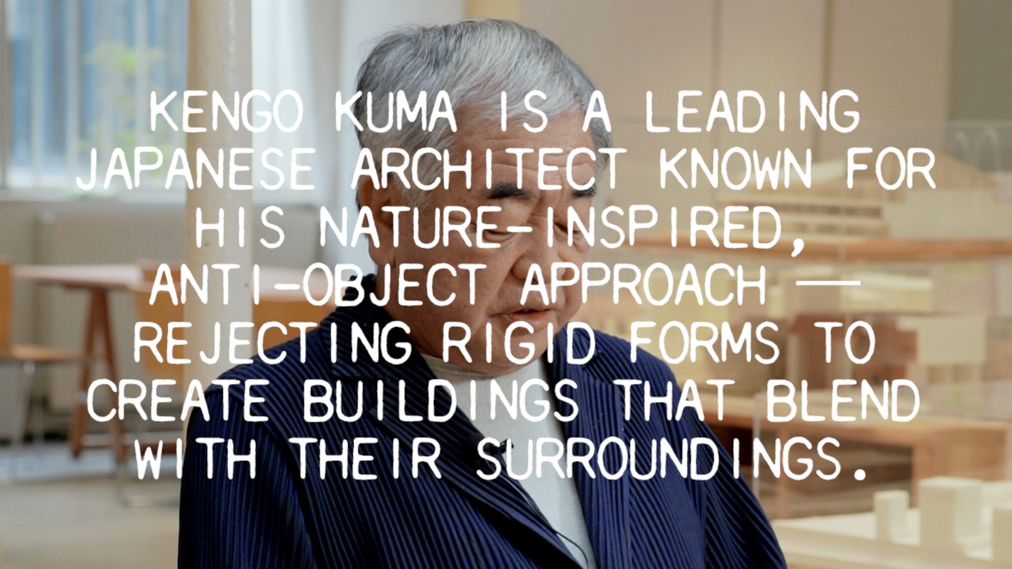 ドキュメンタリー映画Two Chairs 2025.11.28 日本語English隈研吾が、椅子をめぐる美学・機能性・デザイン思想の考察に関する短編ドキュメンタリー映画「Two Charis」に出演しました。 公式予告編 作品ページ Share