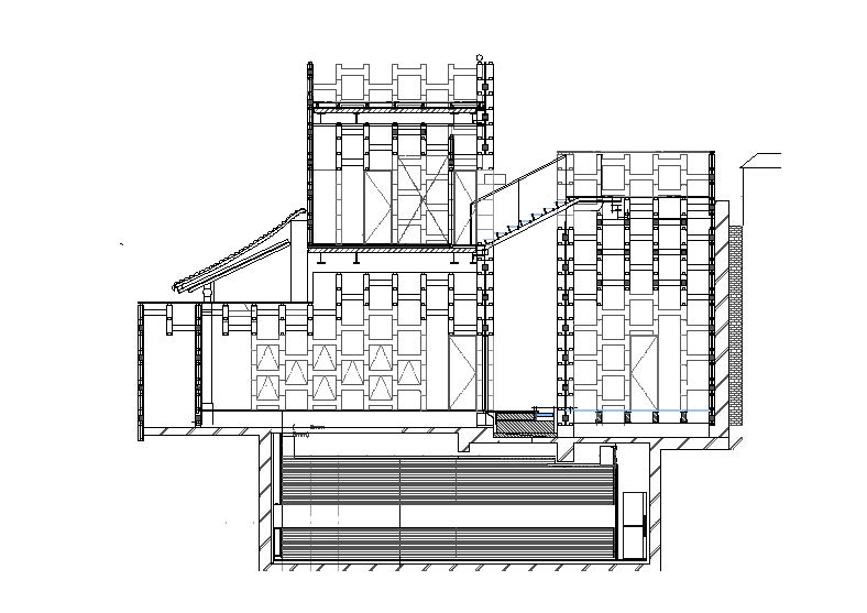 回転成形の方法を用いて4タイプのポリエチレンブロックを作り、それを組み合わせて積み上げることで、増築部分の構造体とした。北京ではレンガを用いた組積造の建築が一般的であり、ポリエチレンブロックは、現代の軽く透明な素材による組積造のヴァリエーションともいえる。ポリエチレンブロックは断熱性能を有し、また、光を透過して、かつての四合院に使われていた紙と同じように、やわらかな光に満ちた禅の空間を生成する。