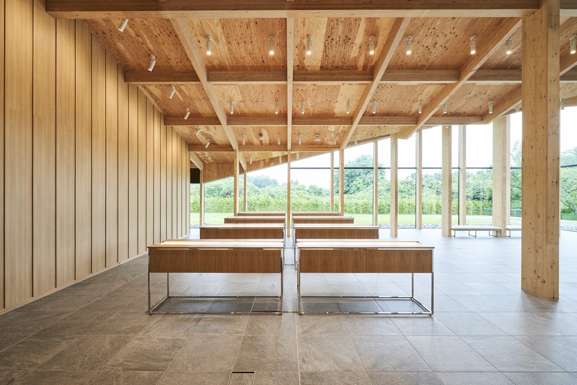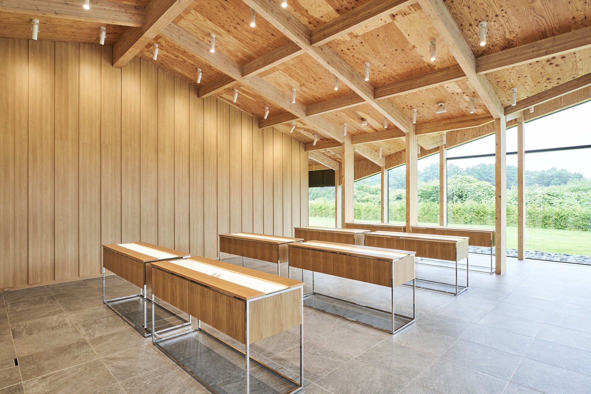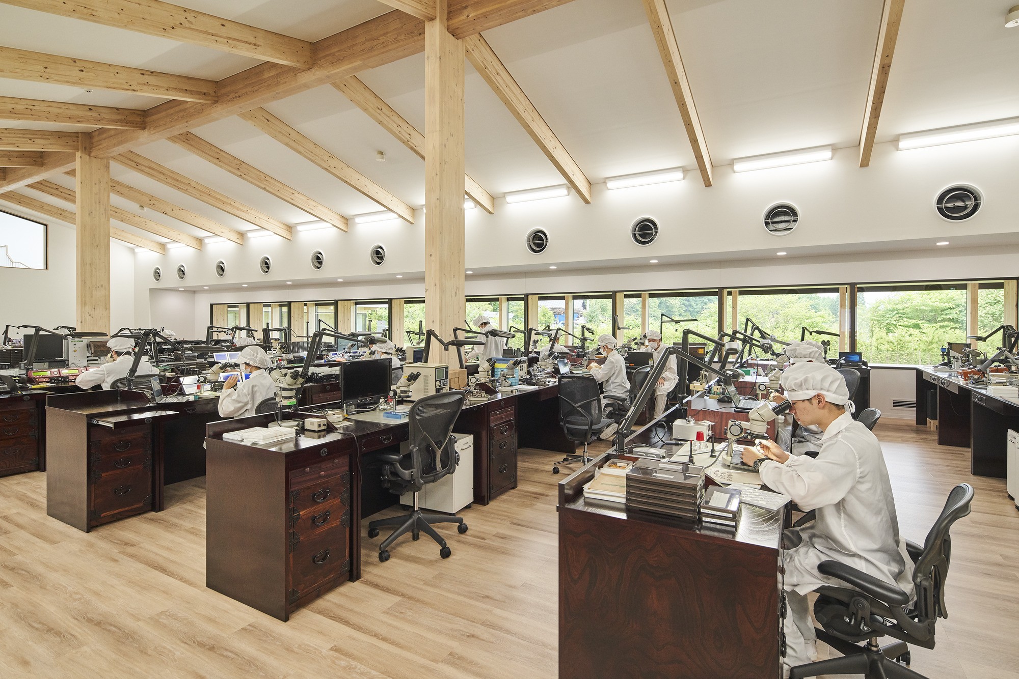 ブランドのフィロソフィーである「THE NATURE OF TIME」の具現化をめざし、木という自然の素材を使い、閉鎖的になりがちなクリーンルームから周辺の自然を感じられる計画とした。