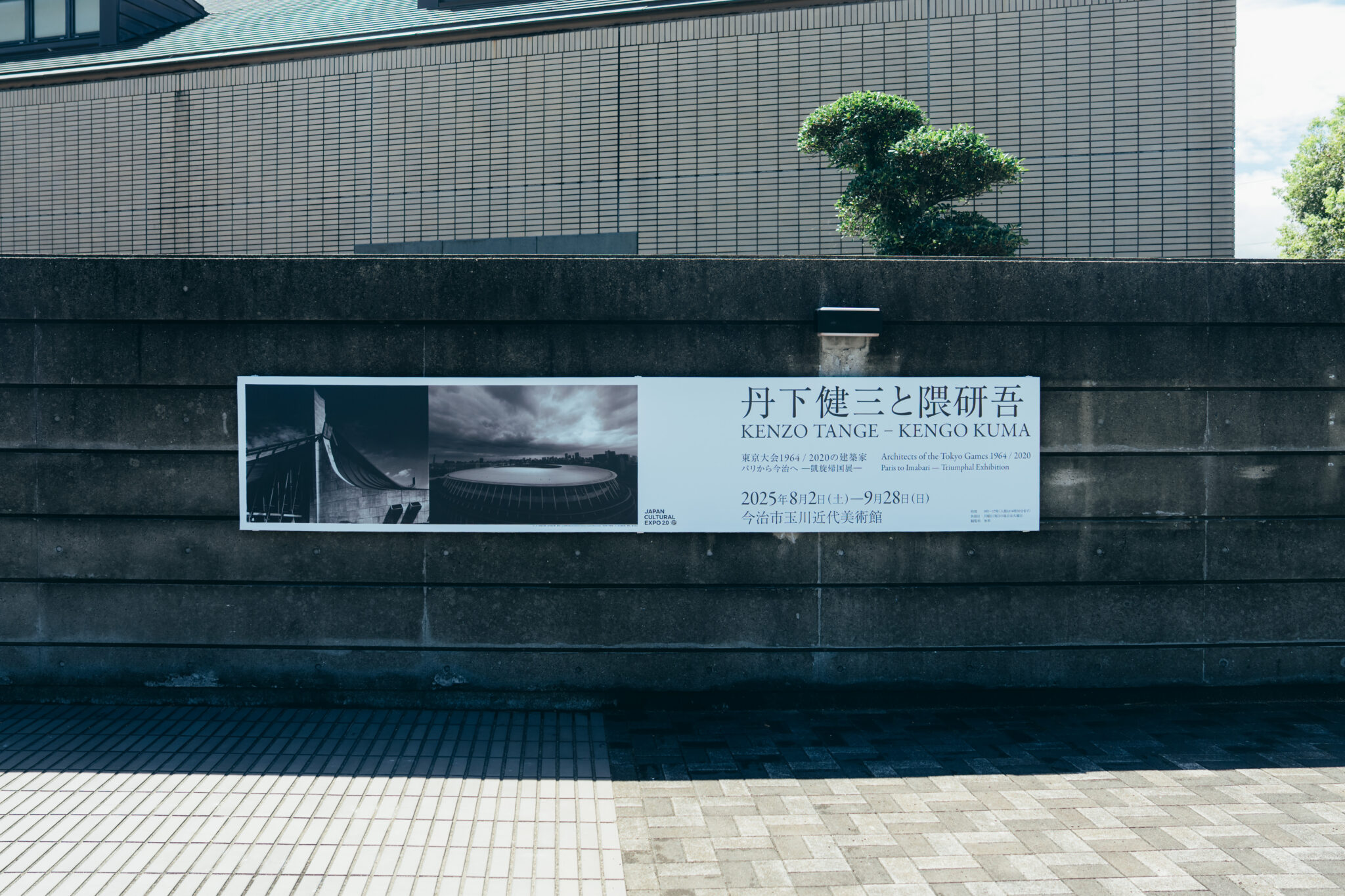 A traveling exhibition, Kenzo Tange & Kengo Kuma Exhibition – Architects of the Tokyo Games, first held in 2024 at the Maison de la Culture du Japon in Paris, was presented in Imabari, Ehime Prefecture—Kenzo Tange’s childhood home.