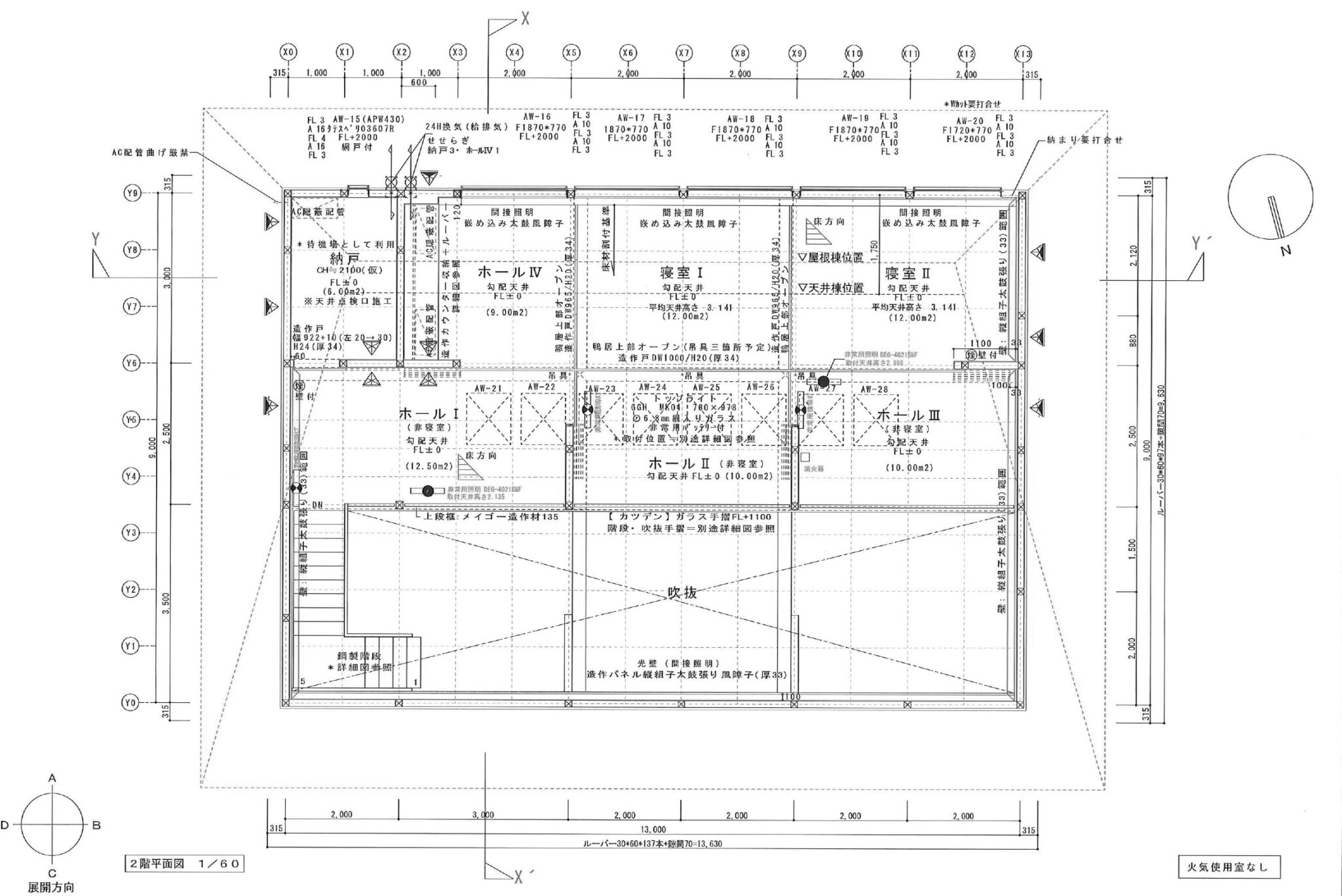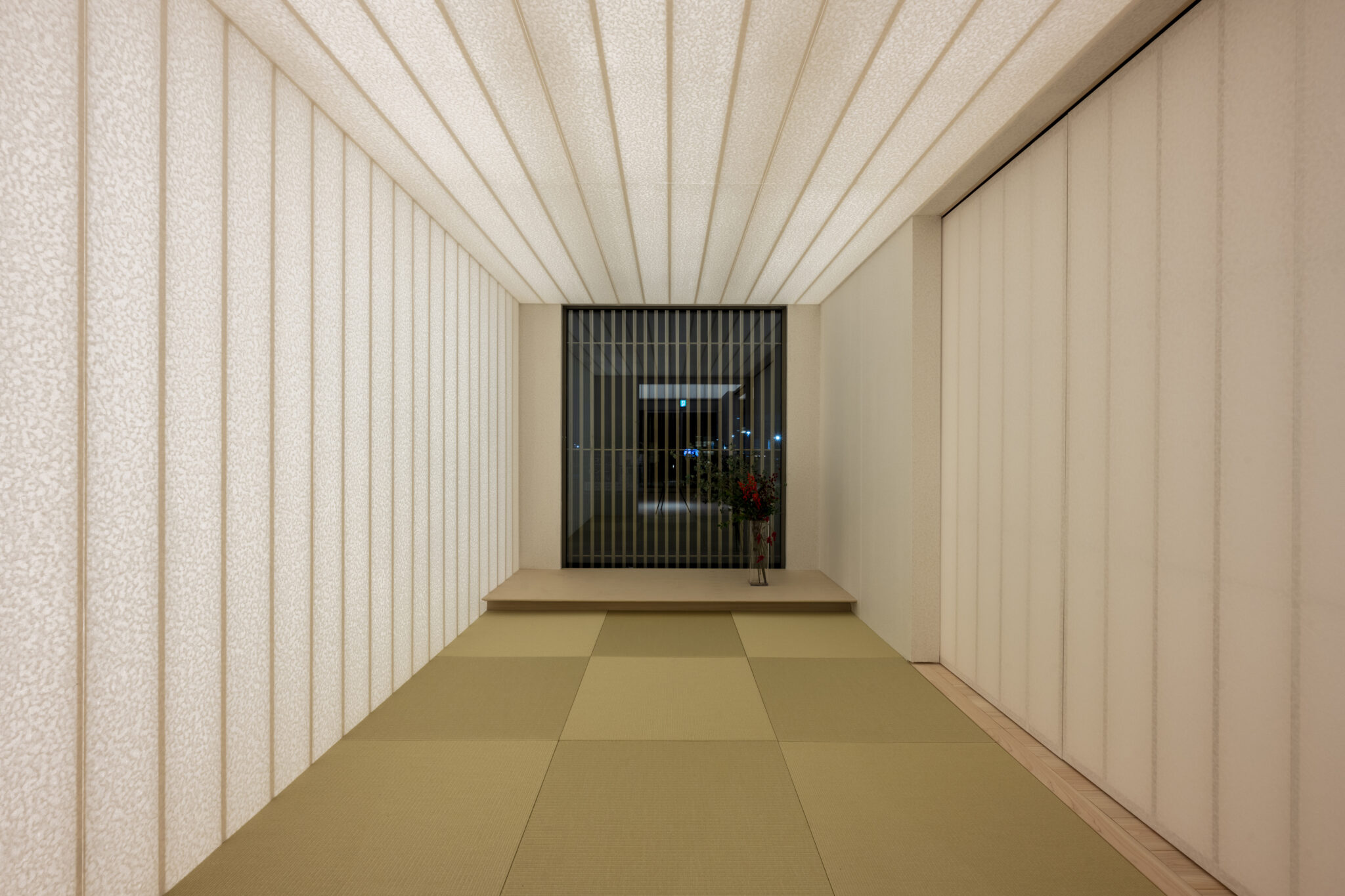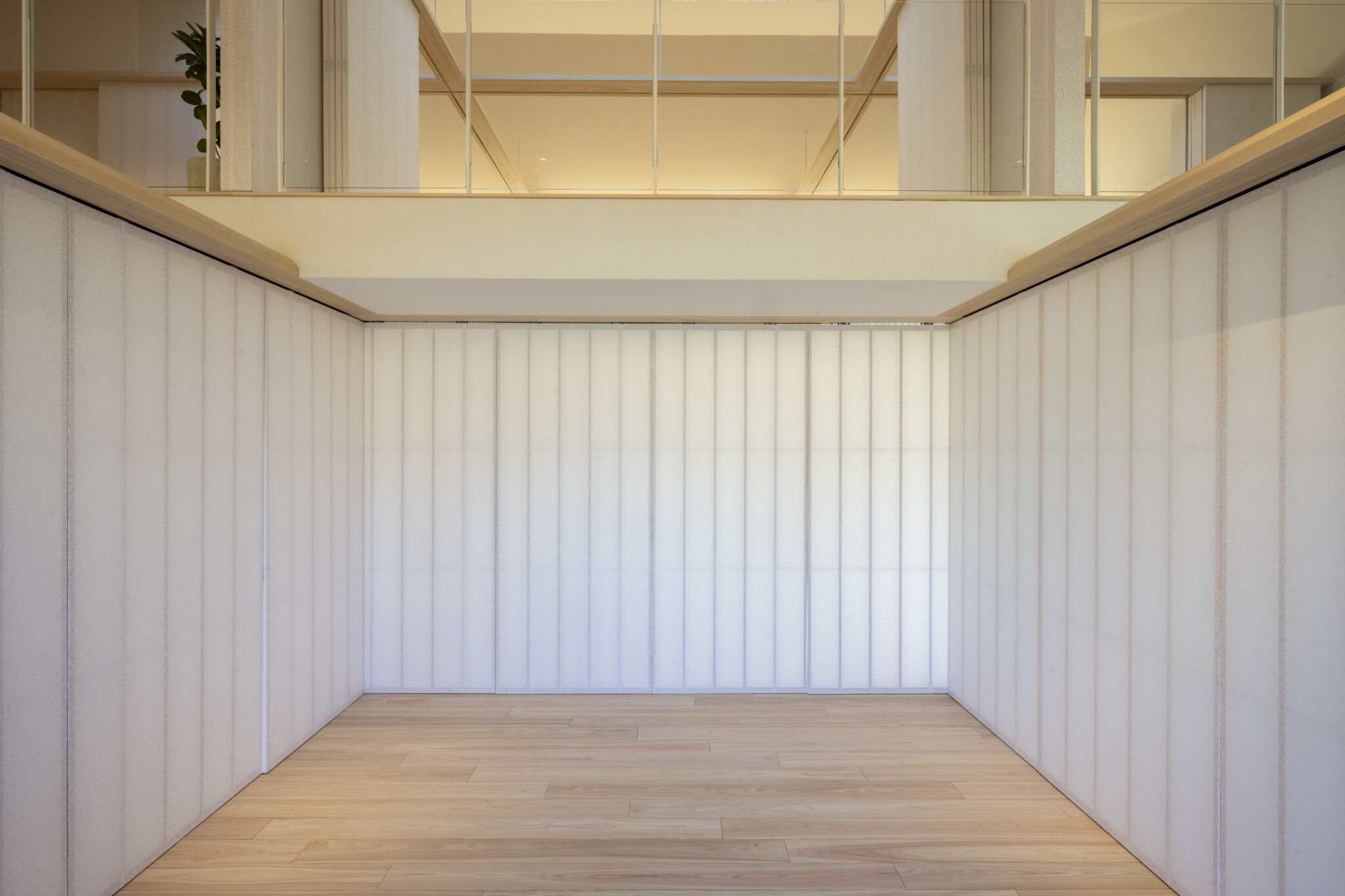 室内の間仕切は、すべて和紙の太鼓張りとすることで、開放感とプライバシーを両立させた。